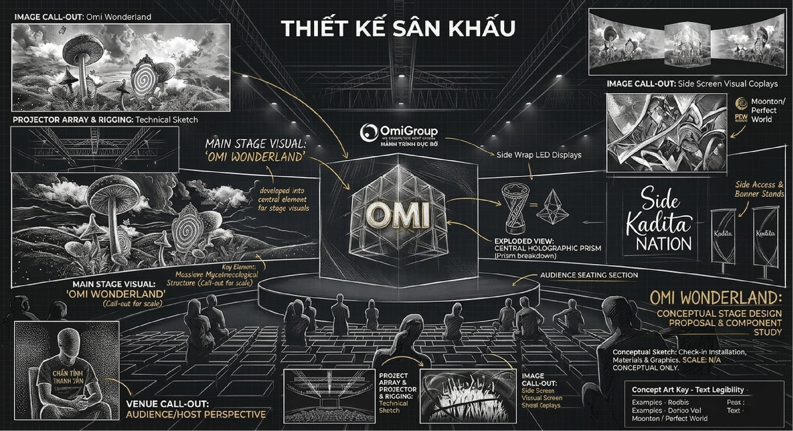 Từ những trao đổi sơ khai, chúng tôi phác họa nhanh bố cục để đảm bảo hai bên đang "cùng nhìn về một hướng". Những khoảnh khắc keymoment bùng nổ được định vị ngay từ đầu trên bản vẽ. Chúng tôi không chỉ vẽ, chúng tôi phác thảo cả cách mà thông điệp của khách hàng sẽ chạm đến cảm xúc khán giả.